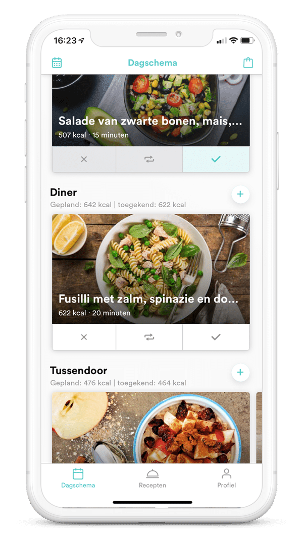Met meer dan 1500 recepten vind je altijd iets wat bij je past. Zin in iets anders? Vervang eenvoudig een maaltijd met tientallen alternatieven die aansluiten op jouw behoeften. Vond je een recept of ingrediënt toch niet lekker? Filter deze dan uit, zodat ze niet meer terugkomen in je weekmenu.